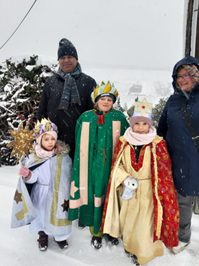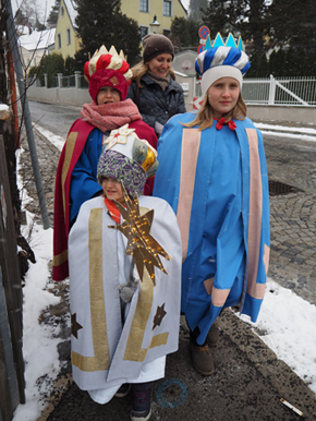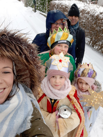 An vier Tagen waren in unserer Pfarre insgesamt acht Gruppen auf den Straßen und Gassen Neustifts und Salmannsdorfs zu sehen und zu hören. Die 25 Kinder waren im Durchschnitt drei Stunden unterwegs und sammelten tapfer bei Schnee und Wind für den guten Zweck. Wir freuen uns sehr, dass es unseren Kindern und Jugendlichen, die zwischen 1,5 und 15 Jahre alt waren, gut gefallen hat. Besonders bedanken wir uns aber auch bei all jenen, die ihnen die Türen geöffnet und großzügig gespendet haben.