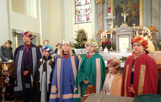 Die große Gruppe unserer diesjährigen Sternsinger wurde durch sieben kleine und große „Könige” vertreten, die mitgestalteten, ministrierten und dieser Messe einen