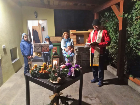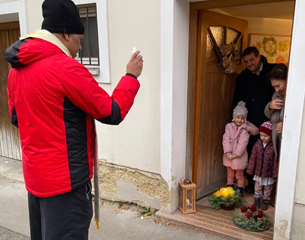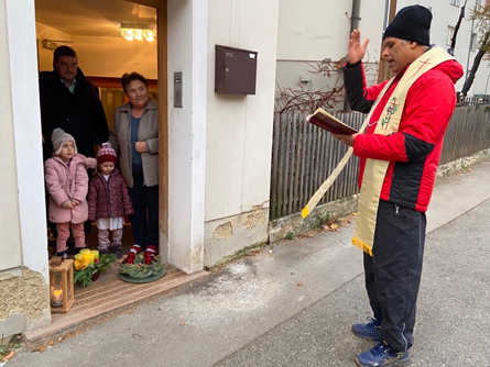 Unter diesem Motto ist Pater Reji am 27. und 28. November 2020 durch sein Pfarrgebiet gewandert und hat Adventkränze und Familien an der Haustür gesegnet.