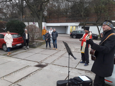 In der Zuckerkandlgasse haben sich benachbarte Familien - mit viel Abstand - zu der „open air” Adventkranzweihe zusammengefunden. Ein ganz besonderes Erlebnis. Es war sehr stimmungsvoll.