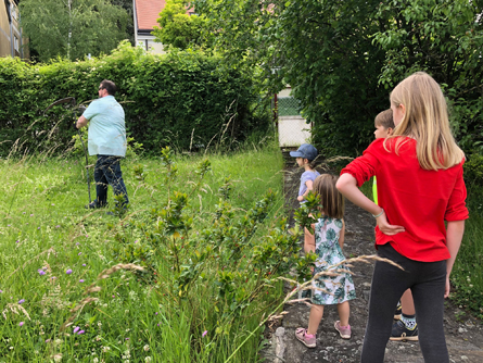 Schön, dass wir hier gemeinsam die bunte Naturwiese beobachten und bewundern dürfen. Diesmal war unser Special guest „Walter mit der Sense”, der Pater Rejis Garten mal so gemäht hat, wie es die Urgroßeltern gemacht haben - Dankeschön!