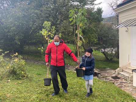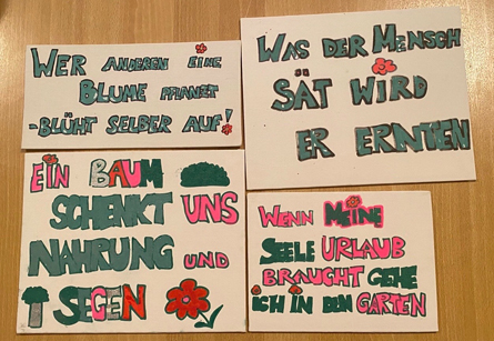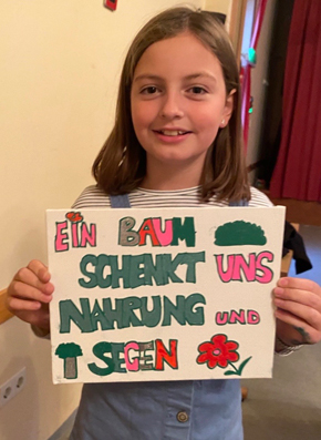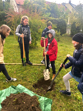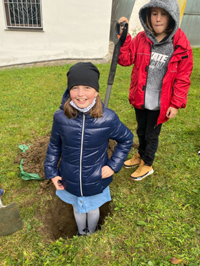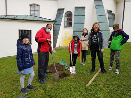 Action pur im Pfarrgarten. Es wurden gegraben und geschaufelt, um genügend große Löcher für die Wurzeln der zu pflanzenden Obstbäume zu schaffen. Der Nachmittag stand ganz im Zeichen der Schöpfungsverantwortung. Fleißig wurden anschließend mehrere bunte Texttafeln angefertigt.