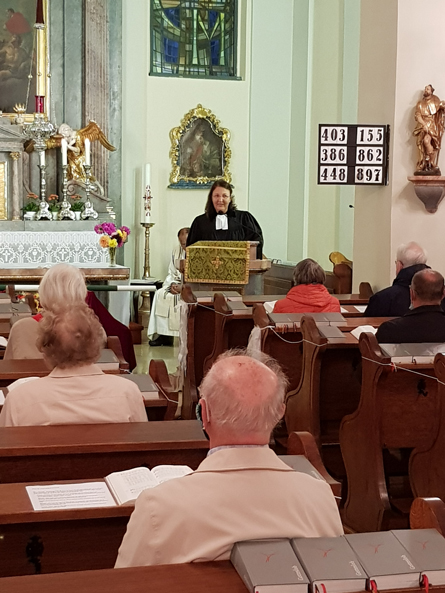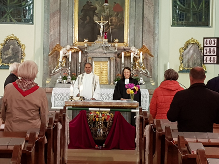 Nach dem Schlusssegen, welchen Pater Reji gemeinsam mit Pfarrerin Barbara Heyse-Schaefer spendete, ging es noch zum geselligen Ausklang hinüber in die Buschenschank Wolff.