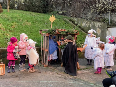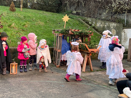 Hervorragend spielten die Kinder (ohne gemeinsame Probe!) die Geschichte von der Geburt Jesu. Danke an alle kleinen Schauspieler*innen, die Musik, die Verantwortlichen für Technik und Übertragung, Pater Reji und natürlich die Mitfeiernden, die sich diszipliniert an unser Coronapräventionskonzept gehalten haben.