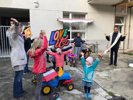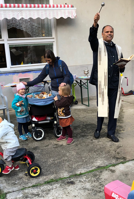 ihre pelzigen Begleiter mit und Pater Reji segnet die Kinder und ihre