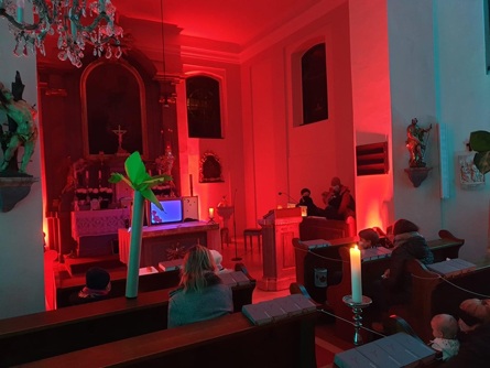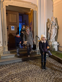 Um 17 Uhr trafen einander sieben Familien mit MNS auf ihren Familieninseln (mit zwei Meter Abstand zur nächsten) und feierten mit einem Schattenspiel und eingespielten Liedern von der Konserve den Heiligen, der besonders durch seine Nächstenliebe bekannt geworden ist. Wie auch er wollen wir den anderen Menschen Licht bringen.