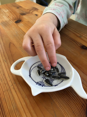 Als Zeichen dafür wässern wir die Sonnenblumenkerne ein, damit sie Kraft bekommen und am Ostersonntag sichtbar keimen.