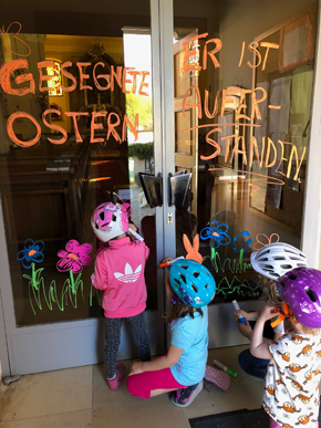 Wer am Ostersonntag in die Kirche kommt, kann sich ein Osterei (Dankeschön an Caroline fürs Beschriften) abholen.