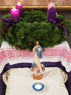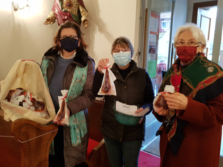 Einen Brauch ihrer Heimat Nicaragua hochhaltend, verteilte Frau Suyapa Padilla nach der Messe Säckchen mit Süßigkeiten an die Mitfeiernden. Sie brachte auch eine persönliche Marienstatue mit, welche sie vor dem Adventkranz aufstellte.