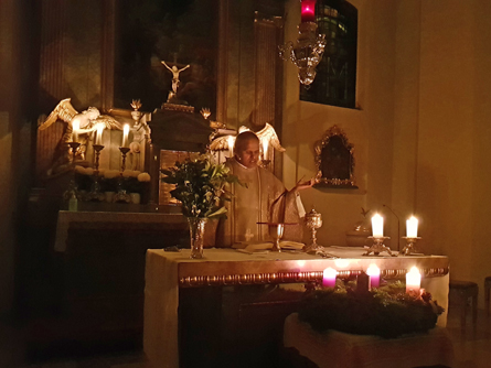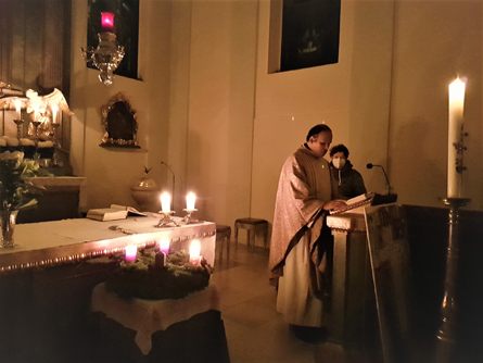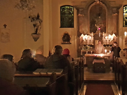 Frei nach dem Motto „Der frühe Vogel fängt den Wurm” fand man sich früh morgens zur Roratemesse in der Kirche ein. Es war noch finster draußen und eisig kalt. In der Kirche wurde einem aber schnell warm ums Herz, spätestens, als Kurt Mikulas weihnachtliches Lied „Zünd ein Licht an” erklang. Dieses begleitet uns schon den ganzen Advent in Richtung Weihnachten. Statt den Text zu singen, wurde dazu gebärdet.