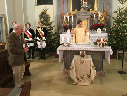 Aus Anlass des 73. Stiftungsfestes K. Ö. H. V. (Katholische Österreichische Hochschulverbindung) Mercuria fand am Freitag, den 24. Jänner um 18 Uhr eine Heilige Messe in unserer Kirche statt. Herr Basilius Markus Paul Stiller can. reg. aus dem Stiftklosterneuburg war der Hauptzelebrant.