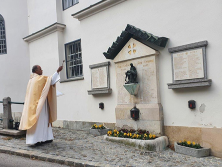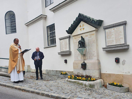 Im Anschluss an die Messe zu Allerheiligen fand vor dem Kriegerdenkmal die traditionelle Andacht zur Erinnerung an alle Verstorbenen, insbesondere aller Kriege, statt.