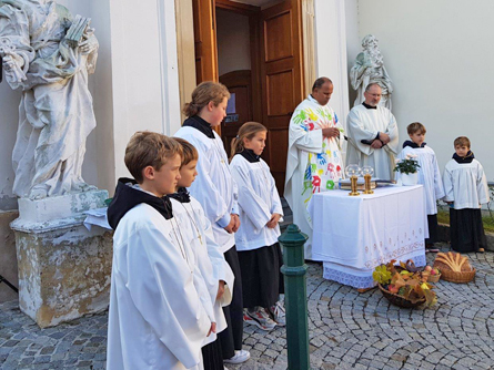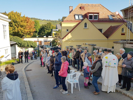 Umso mehr wird bei uns Erntedank als traditionelles Fest hochgehalten. Die Winzer kamen mit ihrer Hauerkrone und brachten Trauben, Obst, Most und Brot für die Segnung und die anschließende reichhaltige Agape mit.