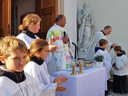 Beachtlich die musikalische Gestaltung, die an Vielfalt seinesgleichen sucht. Zu Gitarre und Cajon gesellten sich wunderschöne Flöten-, Geigen- und Oboenklänge. Passend zum Schlusslied „Stell dich in die Sonne” fanden schließlich auch die ersten wärmenden Sonnenstrahlen ihren Weg vor die Kirche in die Eyblergasse. Im Rahmen des Festgottesdienstes wurden mit Lukas und Maxi auch zwei neue Ministranten aufgenommen.