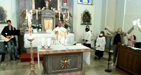 und die Fürbitten mit pantomimischen Szenen begleitet.
