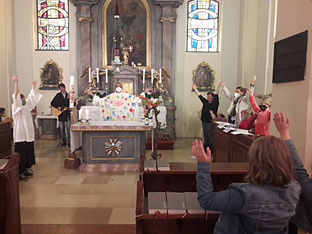 Ja, auch wir sind wie Reben, die - wenn sie mit dem Weinstock verbunden sind - viel Kraft bekommen und Früchte bringen können. Besonders schön war auch das neue Lied von Kurt Mikula, „Du bist der Weinstock, wir sind die Reben”. Es passte nicht nur wegen des Textes, sondern weckte alle müden Geister durch Witz und Schwung.
