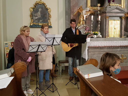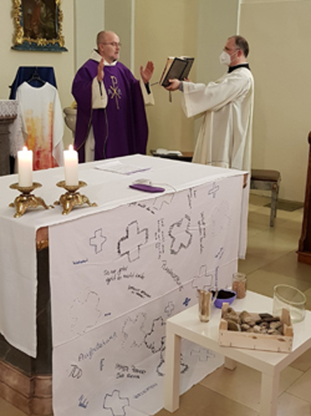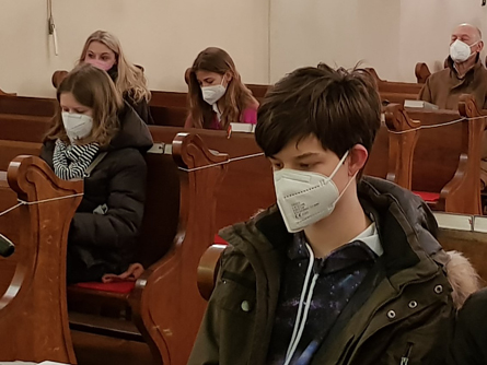 Sicherheit wurde großgeschrieben – Masken mussten getragen werden und jede zweite Bankreihe blieb frei Zum Schluss bekam Schorsch wieder seinen Auftritt, nicht speziell für die Firmlinge, aber für die Jüngsten unserer Pfarre
