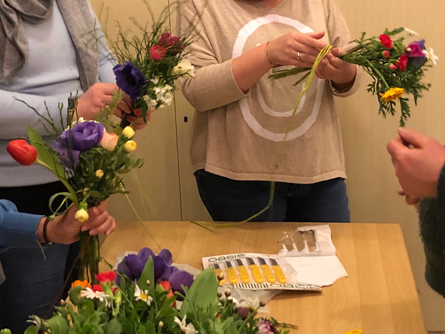 Diesmal war die Pfarre zu Gast im Blumengeschäft „Rosenwalzer” von Ulla Lettner. Nach einer interessanten Vorstellung von Ladeninhaberin, ihrem Beruf und dessen schönen und anstrengenden Seiten, konnten die Teilnehmer*innen unter fachkundiger Anleitung selbst einen Strauß binden.