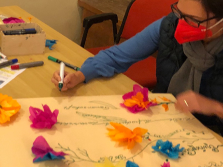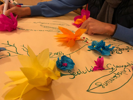 Im Anschluss gestalteten alle gemeinsam ein Plakat „Diese Blumen sollen für uns alle blühen”.