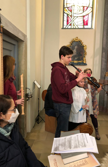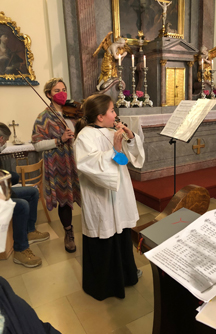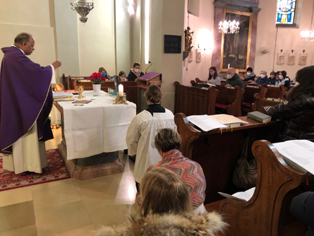 Im Anschluss an die Hl. Messe ließ man beim ersten Indoorpfarrcafe nach längerer Pause Pater Reji anlässlich seines Geburtstages hochleben. Für seinen mit einem weiteren Pfarrmitglied geplanten Pilgerweg von Assisi nach Rom im September erhielt er einen Rucksack als Präsent überreicht.