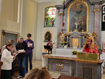 Mit rhythmischer Musik und einer Lesung mit verteilten Rollen gingen wir der Frage nach: „Was kommt danach?” Wir können uns das Jenseits nicht vorstellen, aber wir können auf das vertrauen, was Jesus dazu erklärt hat, beispielsweise im heutigen Evangelium.
