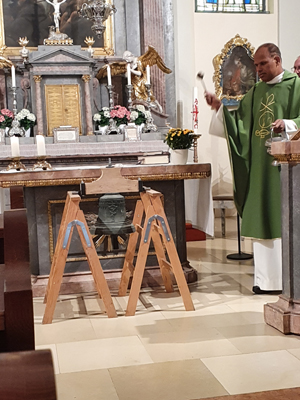Die Glocke wurde am Sonntag von P. Reji Muthukkattil nach der Hl. Messe in der Pfarrkirche gesegnet. Danach konnte man ihrem Klang lauschen und die Glocke auch eingehend besichtigen.