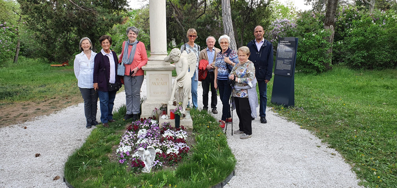 Am 2. Mai besuchten einige Pfarrmitglieder im Rahmen von Kultur&mehr den Sankt Marxer Biedermeier-Friedhof, der auf Anordnung von Josef II. 1784 angelegt wurde. 1791 wurde Wolfgang Amadeus Mozart in einem nicht gekennzeichneten Grab beigesetzt - der nunmehrige Gedenkstein stammt aus späterer Zeit. Bei herrlichem Frühlingswetter genoss man den Duft des blühenden Flieders und bewunderte die Grabdenkmäler. Anschließend ging es in eine gemütliche Konditorei und ließ sich dort eine Jause gut schmecken.