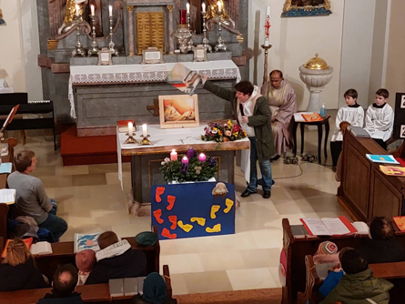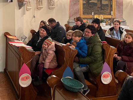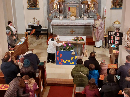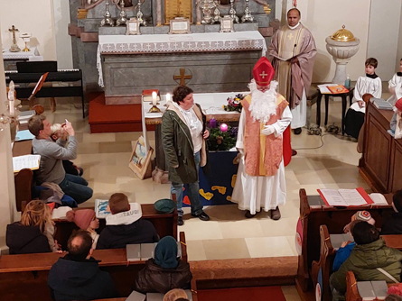 Mit etwas Verspätung fanden sich die Kinder zu einer abendlichen Nikolomesse am Vorabend des dritten Adventsonntags in der Kirche ein. Zunächst wurden drei Kerzen am Adventkranz entzündet,