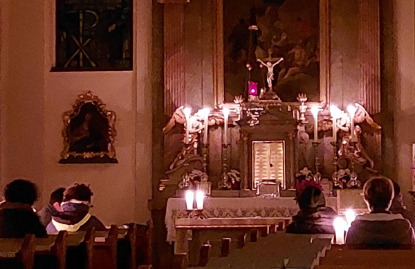 Kerzen am Altar und in den Bänken erzeugten eine stimmungsvolle, fast mystische Atmosphäre.
