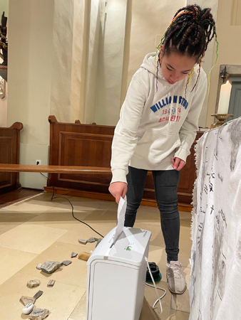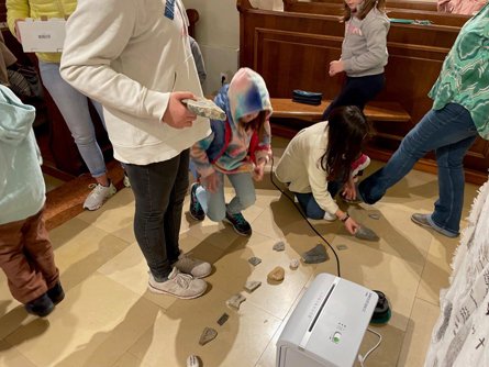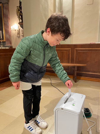 Die Stolpersteine in unserem Leben und das Besinnen auf das, was uns eigentlich ausmacht, das Gestalten einer Versöhnungskerze und natürlich das Beichtgespräch mit Pater Reji waren die Höhepunkte dieses Weges. Das Schreddern der Beichtschummelzettel zeigte: Gott hat nicht nur einen großen Schreibtisch auf dem wir unsere Sorgen deponieren können, sondern auch einen Aktenvernichter. Anschließend gab es noch eine Liederprobe mit Gregori.
