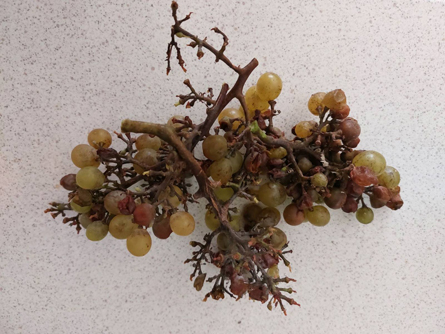 Das Hagelunwetter vom 26. August dieses Jahres verschonte auch P. Rejis Weinstock im Pfarrhof nicht. Nur eine kleine Schüssel einzelner Trauben konnte geerntet werden und diese gelangten nach dem Pfarrkaffee zur Verkostung. Sie waren außerordentlich aromatisch und schmeckten sehr süß.