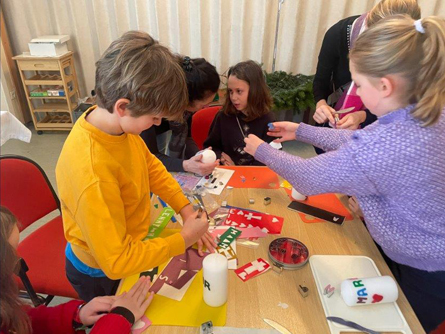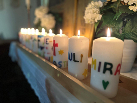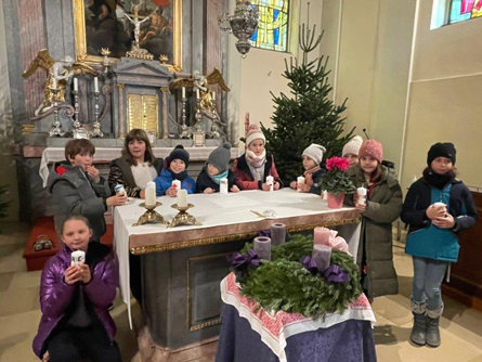 Lebkuchensterne gebacken und bunt verziert. Ein Highlight war das Aufstellen der Kommunionkerzen, die von den Kindern selbst sehr schön gestaltet wurden.