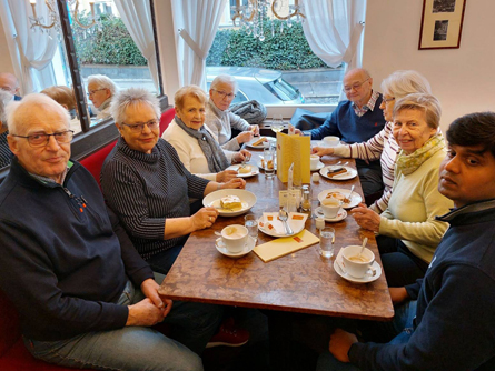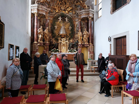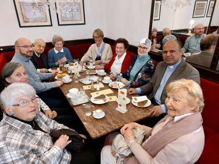 Die Wallfahrtskirche und Hietzinger Pfarrkirche Maria Geburt war Ziel einer Veranstaltung im Rahmen von Kultur&mehr. Kaplan Pater Anthony, der auch schon mehrmals bei uns in Neustift vertretungsweise Hl. Messen zelebrierte, lud dazu ein. Bei einer Kirchenführung erfuhr man Interessantes über die Etappen der facettenreichen Baugeschichte. Für Maria Theresia, die in dieser nächst dem Schloss Schönbrunn gelegenen Kirche gerne die Hl. Messe besuchte, wurden eigens mehrere Umbauten durchgeführt. In einem kleinen der Kirche angeschlossenem Museum gab es unter anderem die Eheringe von Joseph II. zu sehen. Im traditionsreichen Café Dommayer, wo einst Johann Strauss Vater und Sohn konzertierten, ließ man den Nachmittag bei Wiener Melange und verschiedensten Mehlspeisen ausklingen.