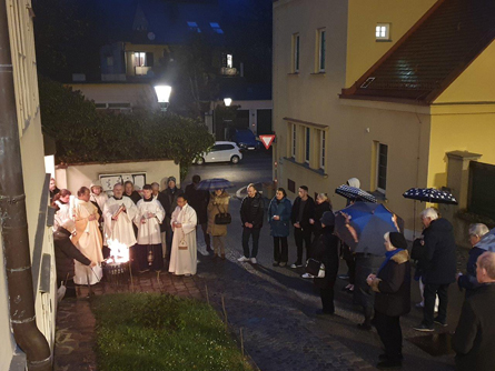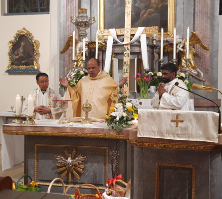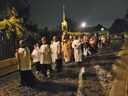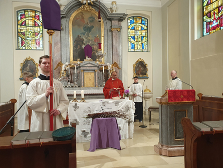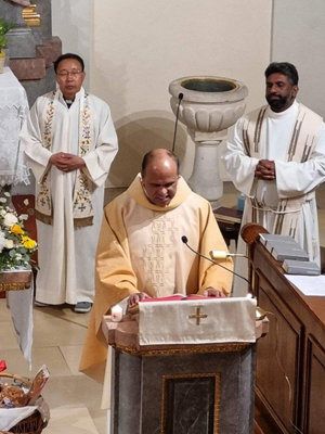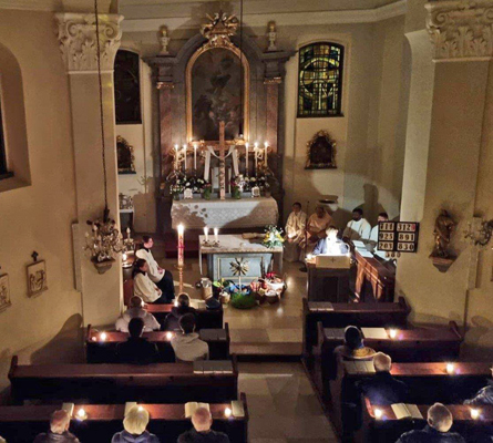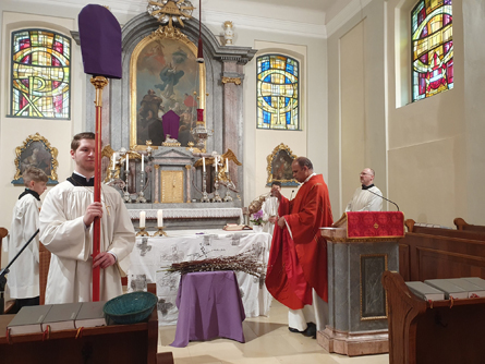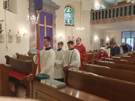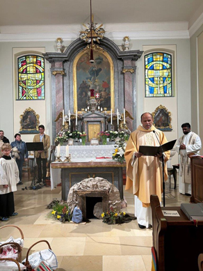 Traditionsgemäß erhielt unser junger Neoministrant am Ende seines ersten Dienstes am Altar am Ende des Ostersonntagsgottesdienstes sein Ministrantenkreuz von Oberministrant Thomas überreicht.