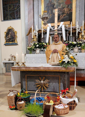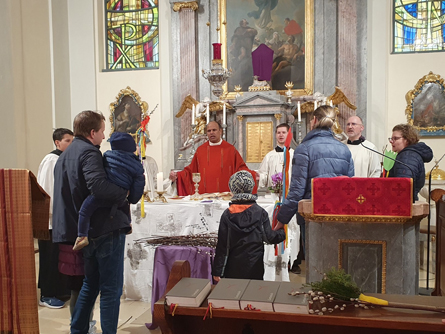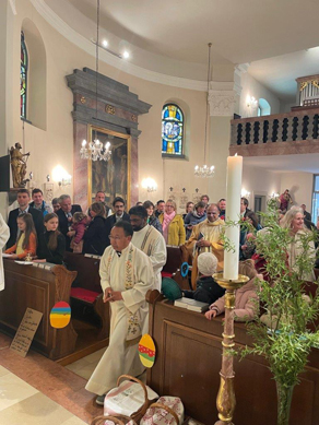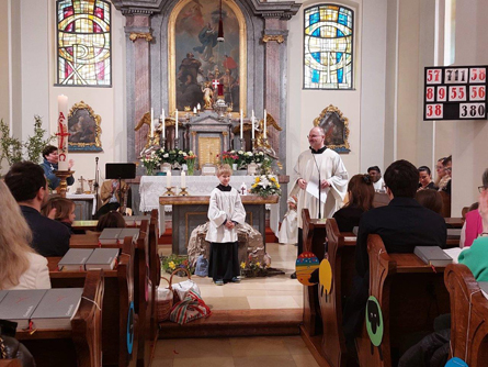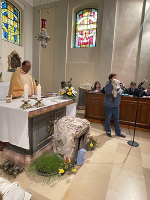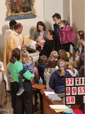 Bei der Kinderostersonntagmesse mit Gemeinde wurde nicht nur die Auferstehung gefeiert, sondern auch die Taufe einer Windelkracherin.