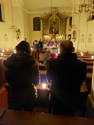 Alle Jahre wieder, das trifft auch auf die Roratemessen zu. Die Kirche lag noch im Dunkel und drinnen ließen Kerzen sie in einem stimmungsvollen Schein erstrahlen.