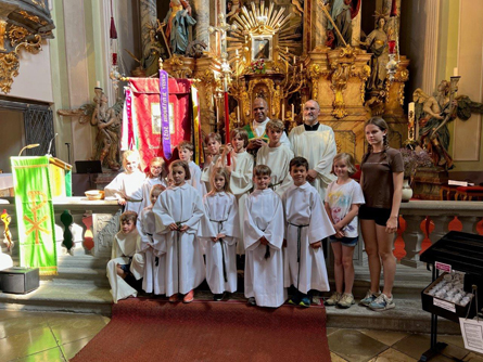 Bei strahlendem Sonnenschein und angenehmen Temperaturen führte der Weg heuer von Neustift/a.W. über den Tulbinger Kogel, Wilfersdorf im Tullnerfeld, Sieghartskirchen und Raipoltenbach nach Maria Jeutendorf. Dort fand in der Anfang des 18. Jahrhunderts errichteten Wallfahrtskirche der Abschlussgottesdienst statt, welcher ob einer großen Schar an Ministrantinnen und Ministranten, besonders feierlich ausfiel. Mehrere Andachten in den zahlreichen Kapellen am Weg setzten spirituelle Akzente, aber auch das gesellige Miteinander von Jung und Alt kam beim Pilgern durch die malerische Landschaft nicht zu kurz.