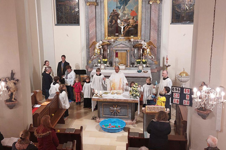 Traditionell treffen einander die Fußwallfahrer am letzten Sonntag vor Advent zu einer Messfeier. Anstelle einer Predigt wurde mit zu suchenden farbigen Bällen veranschaulicht,