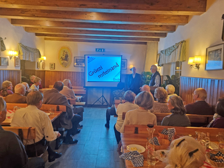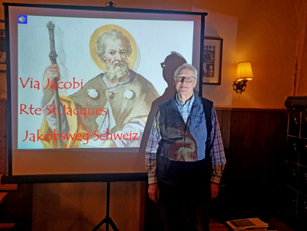 Unter dem Titel, „Kühe, Käse, Sennenhunde”, nahm uns der Vortragende, Herr Ing. Trinkl, mit auf einen der Schweizer Jakobswege. Von Rankweil in Vorarlberg, über Appenzell, Einsiedeln, Brunnen, Brienz, Interlaken, Thur, Röstigraben (Sprachgrenze Deutsch/Französisch) bis zum Genfer See. 2½ Wochen durch eine Landschaft, die mit zahlreichen Seen, beeindruckenden Bergpanoramen, gastfreundlichen Quartiergebern und imposant angelegten Wegstrecken, die oftmals von vielen Stufen geprägt ist. Aufgrund der Bauarbeiten im Pfarrheim fand der zahlreich besuchte Bildvortrag in einem Heurigenlokal statt.