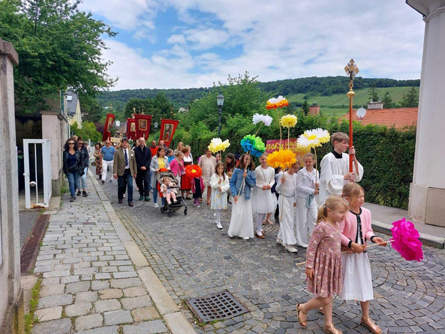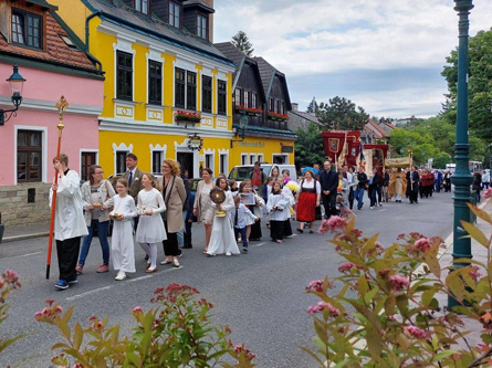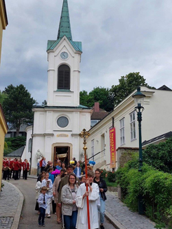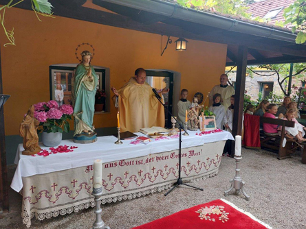 Die Tradition will es so. Nicht am Fronleichnamstag, sondern am darauffolgenden Sonntag fand in Neustift der „Umgang” statt. Nach dem Wortgottesdienst zog Pater Reji mit der Monstranz,