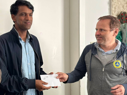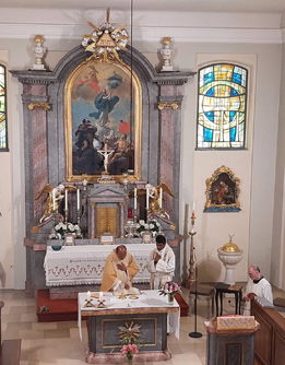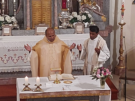 Am Fronleichnamstag zelebrierte Dr. Thomas Thekkekarottu MSFS, ein Mitbruder von Pater Reji, gemeinsam mit ihm die Hl. Messe. Er leitet das Kinderheim NEST in Bangalore, der Hauptstadt des südindischen Bundesstaates Karnataka. Spontan wurden nach dem Gottesdienst in einer zweiten Kollekte Spenden für das Heim gesammelt. Beim Pfarrkaffee konnte sodann ein Kuvert mit € 250.- überreicht werden.