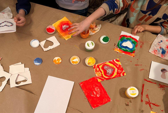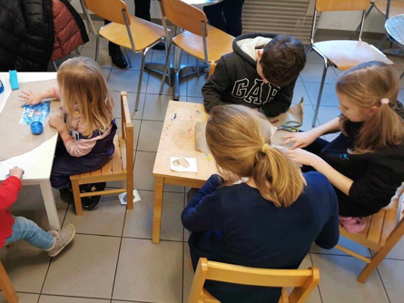 Pater Reji spendete das Aschenkreuz und nach der gemeinsamen Gestaltung des Fasten-Altartuchs gab es eine gute Fastensuppe.