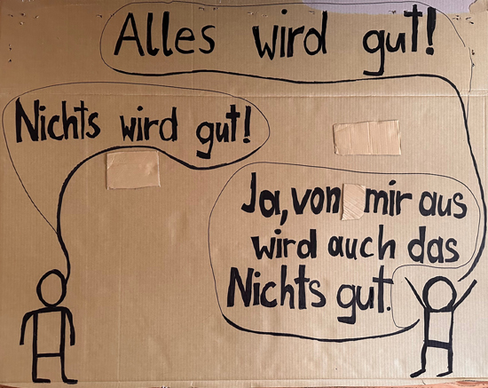 Der Pfarrfastenvorsatz hängt in diesem Jahr auf dem Pfarr-Garagentor: Wir möchten uns darum bemühen, auch das, was sinnlos erscheint, positiv zu verändern.