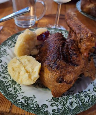 Außen knusprig, innen weich - so gehören sie und so waren sie auch, die gebratenen Gänse beim Heurigen „Zum schiefen Giebel” und die Beilagen waren ebenfalls köstlich, so stellte es die Gruppe Kultur&mehr einstimmig fest. Auch Pater Reji genoss das traditionelle Gericht.