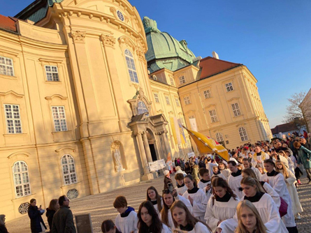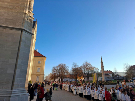 Die Stiftskirche in Klosterneuburg, voll mit rund 300 Mädchen und Buben in ihren Ministrantengwändern aus verschiedentsten Pfarren in Wien und