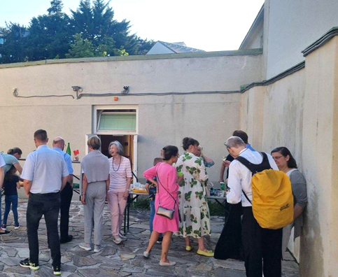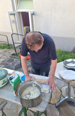 Die Essensstation im Hof des Pfarrhofs lockte mit zwei von Pater Reji zubereiteten Linsensuppen und etwas ausgefalleneren Köstlichkeiten, wie zum Beispiel scharf gewürzten Heimchen.