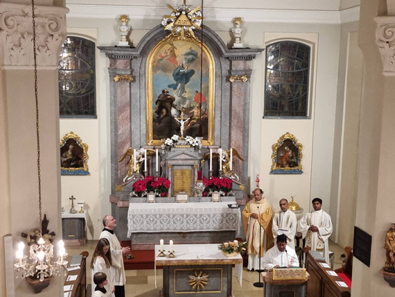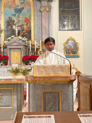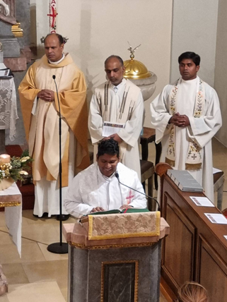 gemeinsam mit seinen Mitbrüdern gefeiert. Die Feier begann mit einer Festmesse um 18 Uhr. In seiner Predigt gab P. Antony, der Mitbruder von P. Reji, einen Einblick in die Spiritualität des