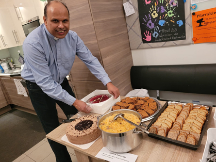 Nach der Festmesse versammelten sich alle im Pfarrsaal, um die Mitbrüder von P. Reji, P. Antony, P. Anil und P. Manikumar, zu begrüßen und an den Festlichkeiten teilzunehmen. Um die Freude zu vervielfachen,
