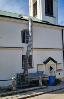 Gleich in zweierlei Hinsicht musste sich die Pfarre der Schädlingsbekämpfung widmen. Einerseits wurden am Dachstuhl der Kirche mittels Heißluftverfahren Holzschädlinge bekämpft. Und andererseits ging die Statue unseres Kirchenpatrons - des hl. Rochus - auf Reise in eine Kirche im nördlichen Weinviertel, in der eine Begasung durchgeführt wurde, um den möglicherweise aktiven Holzwurmbefall hintanzuhalten.