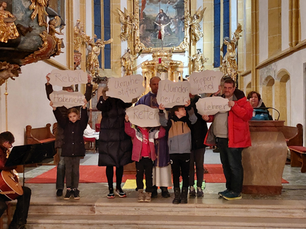 Diese wurde sodann mit musikalischer und thematischer Gestaltung klimatisch erwärmt. Schorsch, unsere Schafshandpuppe, vermittelte in gewohnt kindergerechter Weise die Schriftlesungen. Ein Kegelabend und Kunstbahneisstockschießen rundeten das Rahmenprogramm ab.